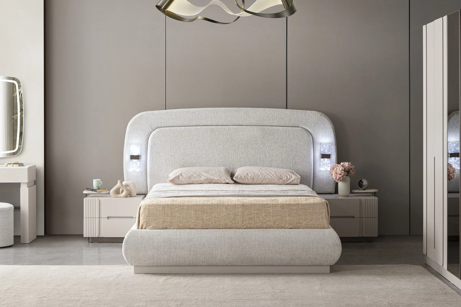 Nova Yatak Odası, zarif ve modern çizgilerle tasarlanmıştır. Zamansız bir şıklığa sahip olan bu takım, her türlü dekorasyon tarzıyla uyum sağlar. Özenle seçilmiş renk ve malzeme kombinasyonları, mekanı daha ferah ve aydınlık gösterir. Yatak odası takımının her parçası, özellikle modern yaşam alanlarına uyum sağlamak için tasarlanmıştır.