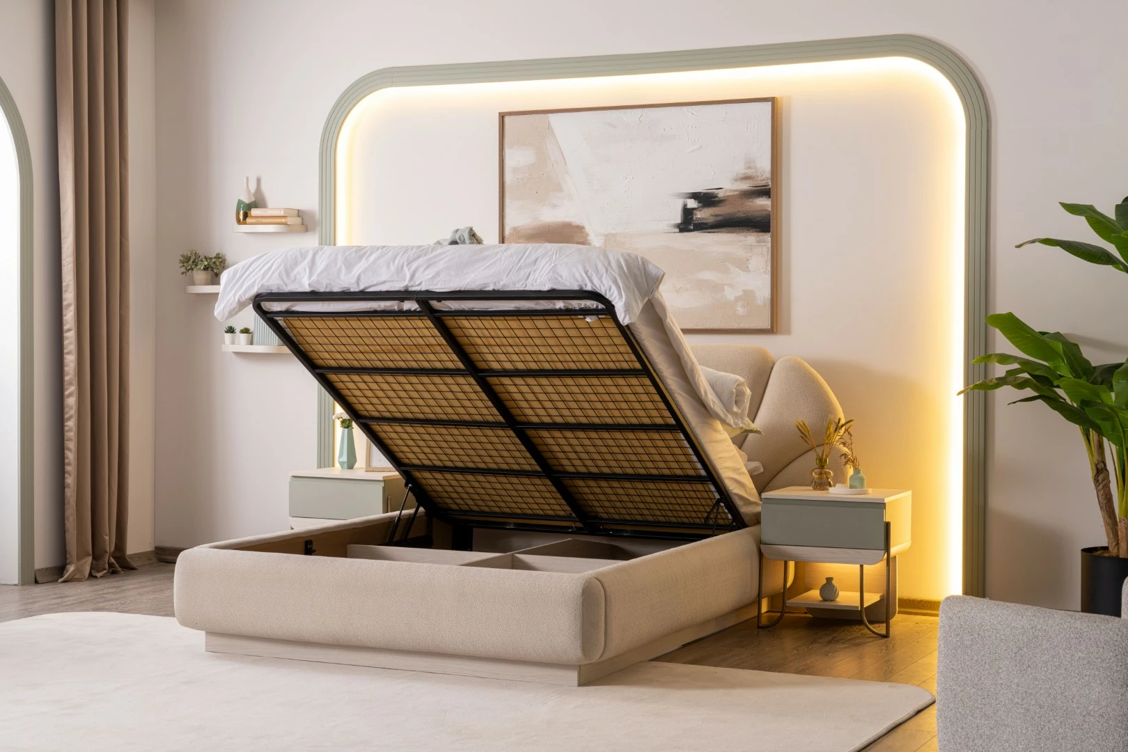 Karizma Modern Yatak Odası, sadece şık bir görünüme değil, aynı zamanda pratik çözümlere de sahiptir. Giysileriniz, kıyafetleriniz ve diğer eşyalarınız için geniş ve düzenli depolama alanları sunan bu takım, odanızın daha düzenli ve ferah görünmesini sağlar. Çekmeceler, raflar ve gardırop bölmeleri, eşyalarınızı kolayca organize etmenize yardımcı olur.