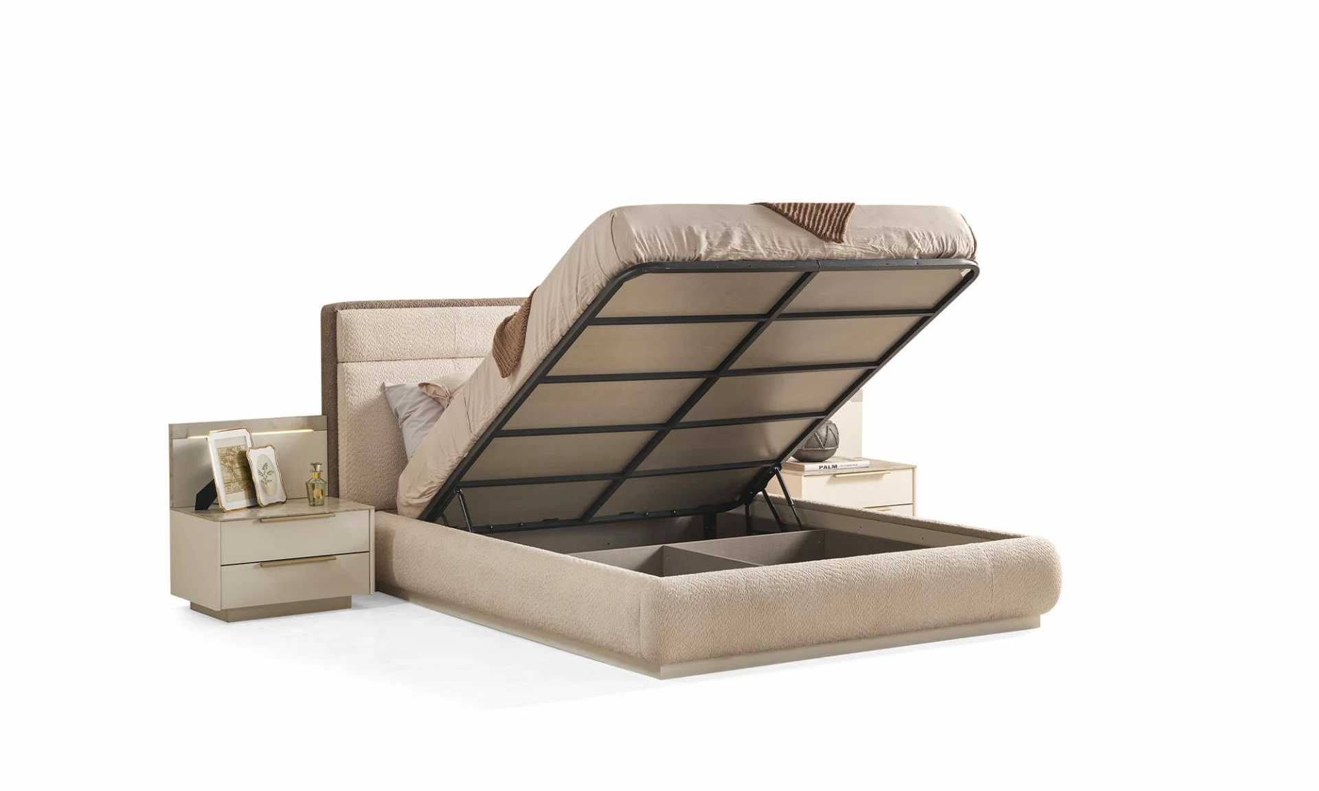 INFINITY Yatak Odası, kişisel zevkinize ve yaşam tarzınıza uygun şekilde düzenlenebilir. Farklı depolama seçenekleri ve düzenleme imkanlarıyla, ihtiyaçlarınıza en uygun düzeni oluşturabilirsiniz. Kendi tarzınızı yansıtan bir yatak odası yaratmak için çeşitli düzenlemeler yapabilirsiniz.